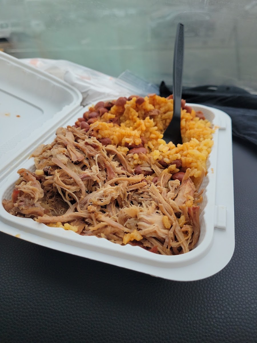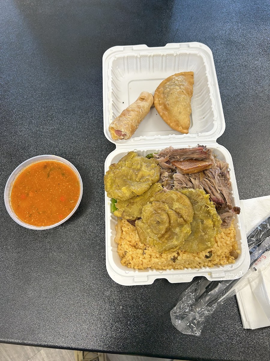 Gem of a place that apparently only opened a few months ago. They are a small family-owned business that truly puts their heart and souls into their food. You can tell they are still getting into the groove of things and they don't have posted prices, but they do change the menu every few days. This restaurant is takeout only and it can be tight to wait in line inside, but when we went it wasn't busy so we were helped immediately. I bet they will be successful in the long term. The woman at the counter was kind and the food delicious. We recommend the pernil, rice/beans, tostones, and sweet plantains!